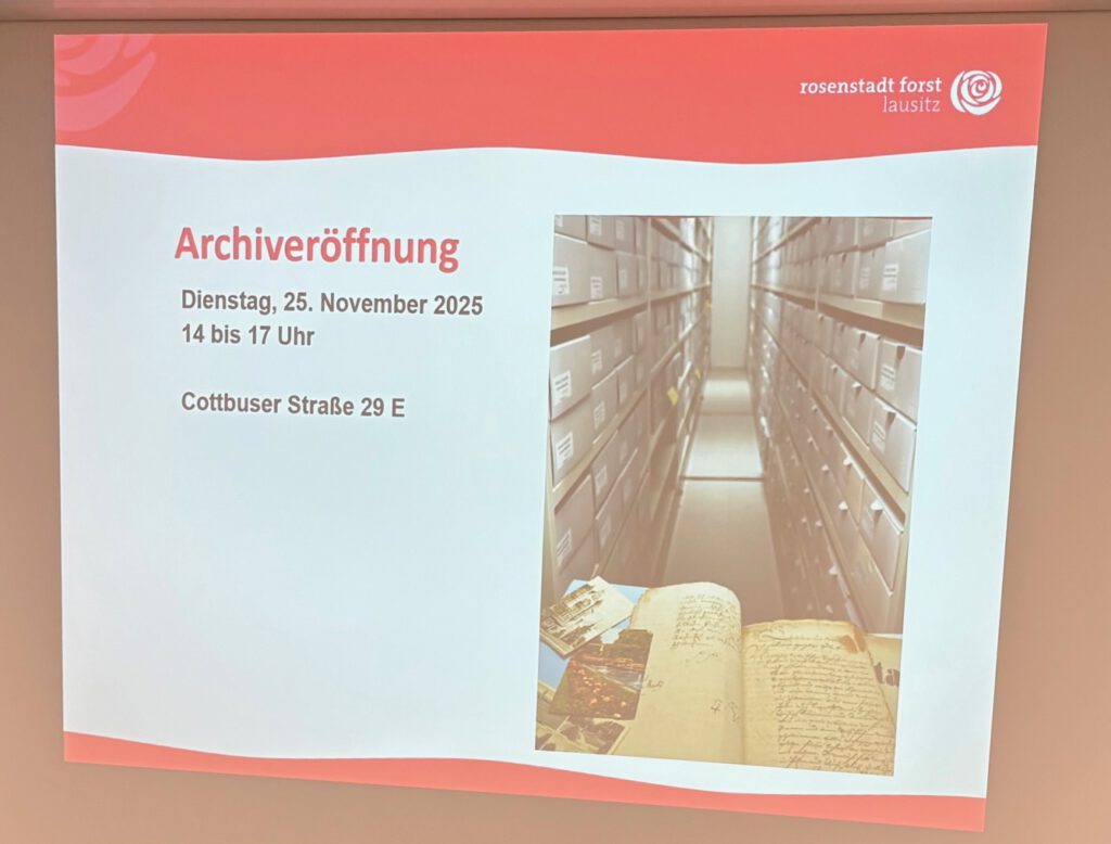 Zum Abschluss der Veranstaltung lud Martin Knopp noch herzlich zu Eröffnung des neuen Stadtarchives am Standort Cottbuser Straße 29 E ein: 25.November 14-17 Uhr.
