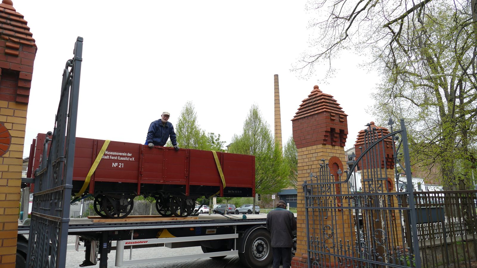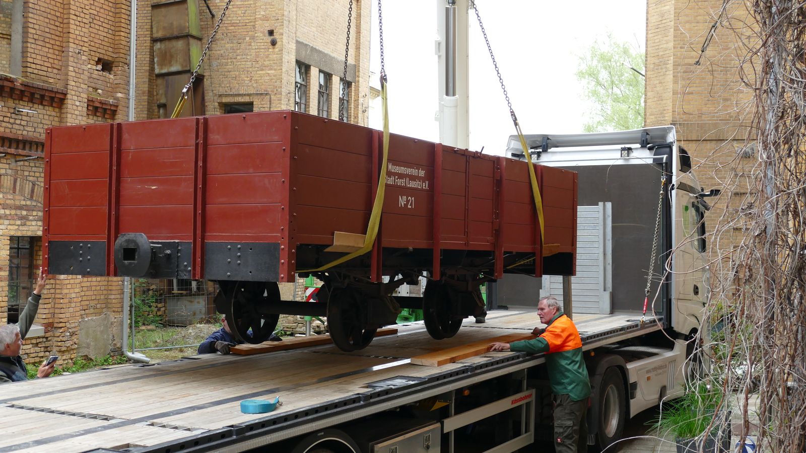 Am 24. April 2026 rückten Mitglieder des Museumsvereins an, um den offenen Wagen aus einer stillgelegten Produktionshalle der ehemaligen Textilfabrik Adolf Noack in der Max-Fritz-Hammer-Straße nach der Fertigstellung der Umbaumaßnahmen im ehemaligen Textilmuseum zu seinem endgültigen Platz im Ausstellungskomplex zur Geschichte der Forster Stadteisenbahn umzusetzen.